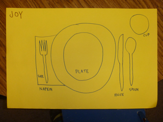Our Thanksgiving "gift" to parents is learning how to set our table...these place mattes will come home this week...